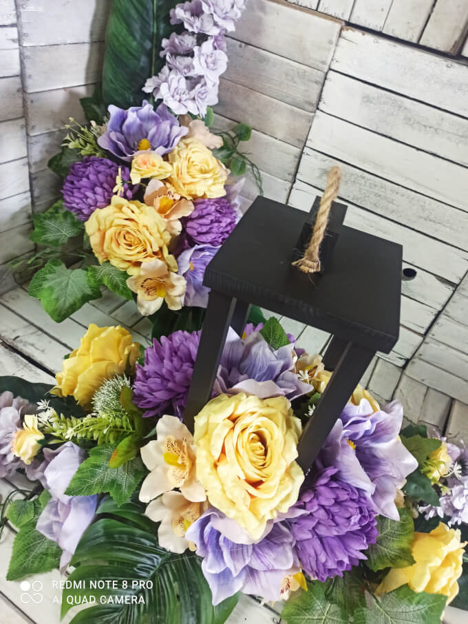 Kompozycje na cmentarz ze sztucznych kwiatów w porównaniu do żywych wyróżniają się odpornością na niesprzyjającą pogodę.