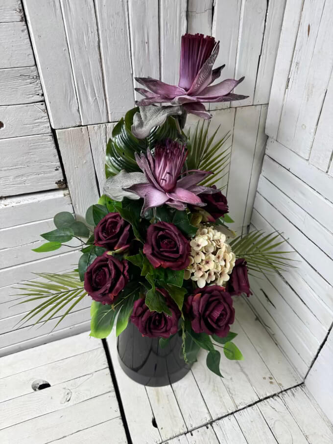 eleganckie kompozycje na cmentarz, kwiaty na grób, nowoczesne kwiaty na cmentarz,