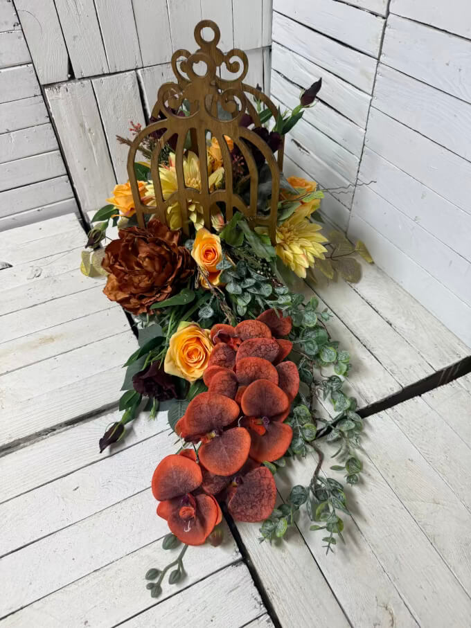 Bukiet i stroik KOMPET na cmentarz nagrobny nowoczesny klatka Wszystkich Świętych wiązanka kompozycja 303p