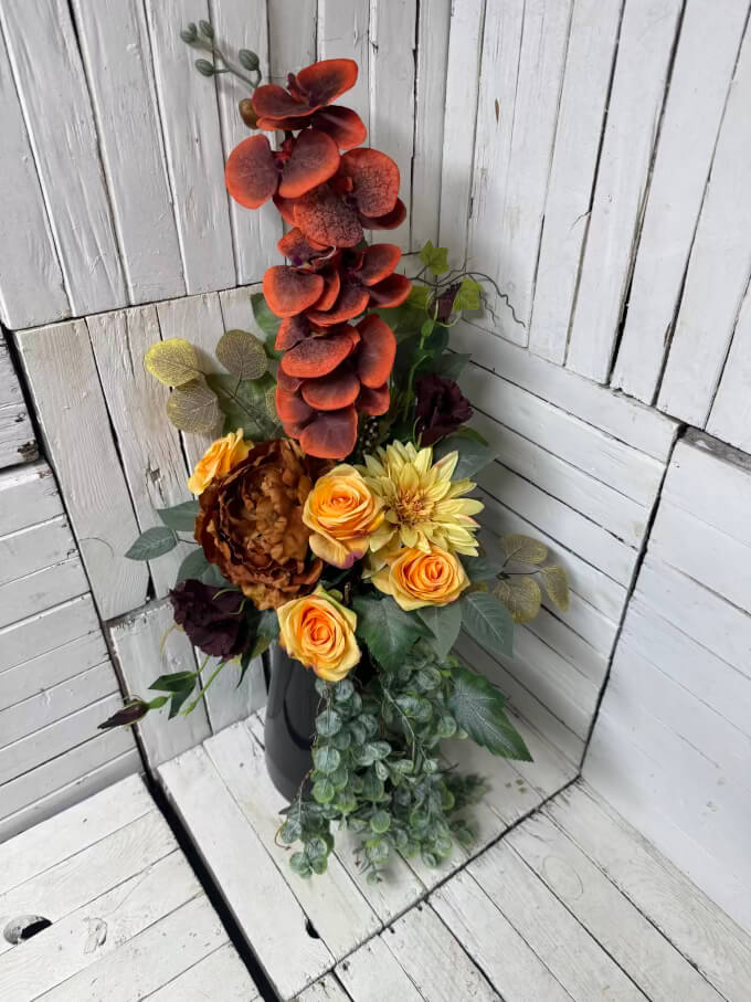 Nowoczesne stroiki na cmentarz ze sztucznych kwiatów, nietypowe stroiki na cmentarz, tanie stroiki na cmentarz