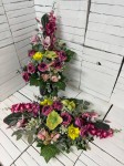Bukiet na cmentarz –Duży komplet nagrobny ze stroikiem różowy i zielony