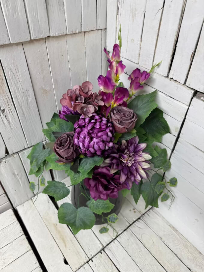 Nowoczesne stroiki na cmentarz ze sztucznych kwiatów, nietypowe stroiki na cmentarz, tanie stroiki na cmentarz