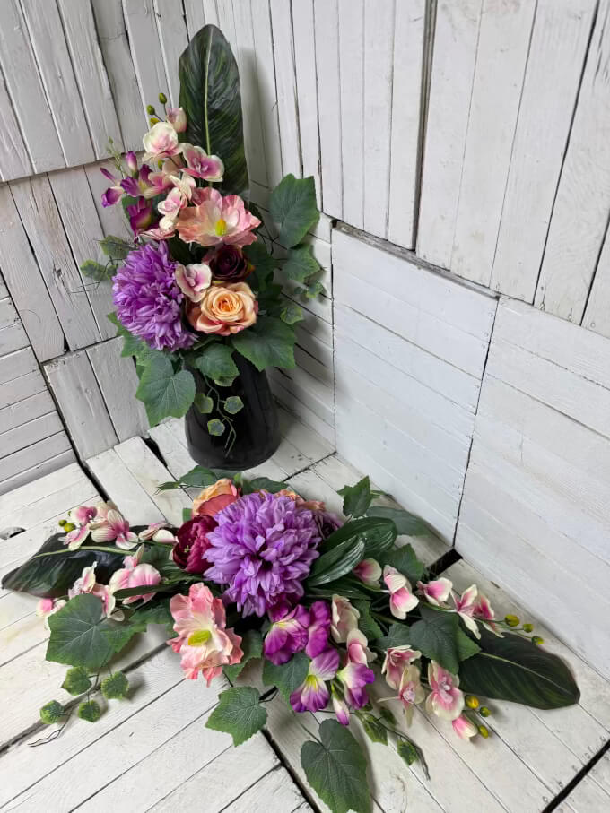 Komplet na cmentarz- stroiki na cmentarz-zdjęcia-kompozycja na cmentarz-kompozycje-sztuczne- Bukiet i Stroik na grób cmentarz bukiet zestaw komplet kompozycja nagrobna vb33m