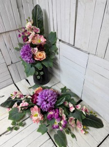 Nowoczesne stroiki na cmentarz ze sztucznych kwiatów, nietypowe stroiki na cmentarz, tanie stroiki na cmentarz