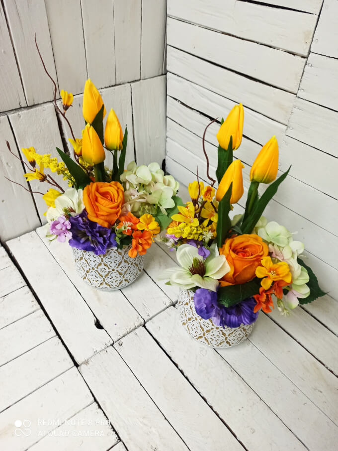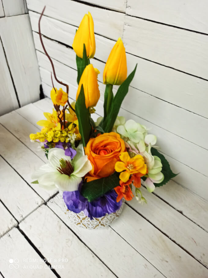Całość tworzą piękne wiosenne kwiaty.