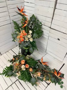 - Wyjątkowy stroik z rajskim kwiatem (strelicją) wprowadza do dekoracji grobu egzotykę i elegancję