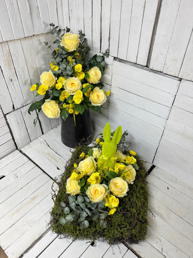 Nowoczesne Stroiki na cmentarz Komplet na cmentarz kompozycja kwiaty na grób eleganckie wiosna Stroiki piękne kompozycje