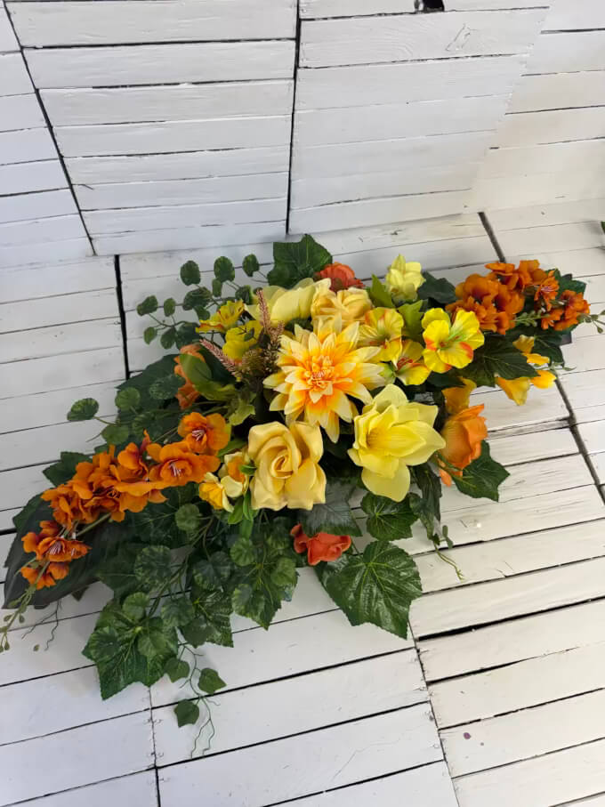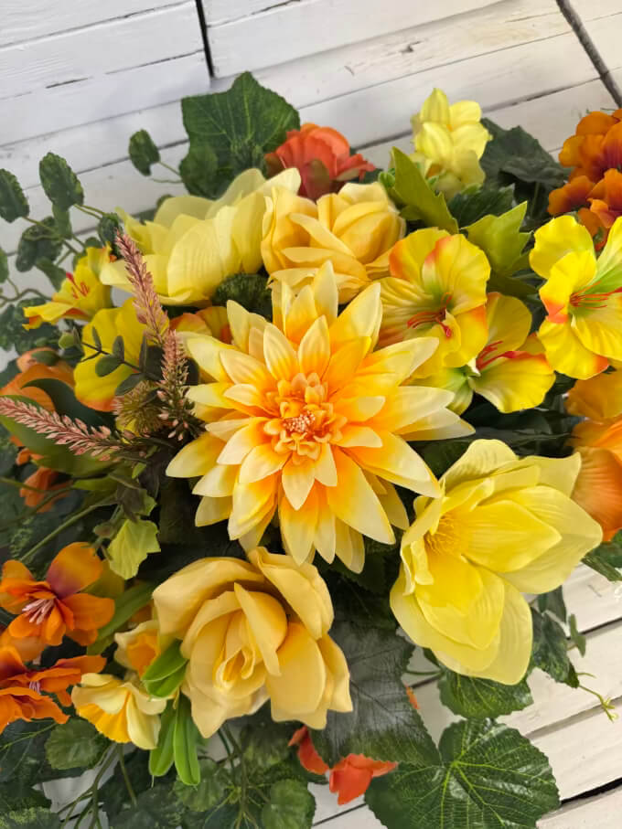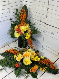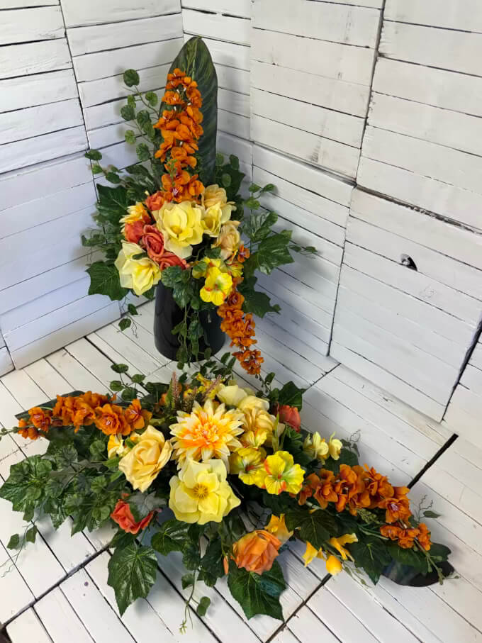 Nowość Elegancka kompozycja nagrobna ze sztucznych kwiatów duzy stroik i bukiet 2026-42
