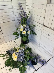 Zestaw doskonale sprawdzi się jako dekoracja grobu taty, dziadka czy wujka. Stonowana, elegancka kolorystyka oraz nowoczesna forma nadają kompozycji uniwersalnego, pełnego szacunku charakteru.