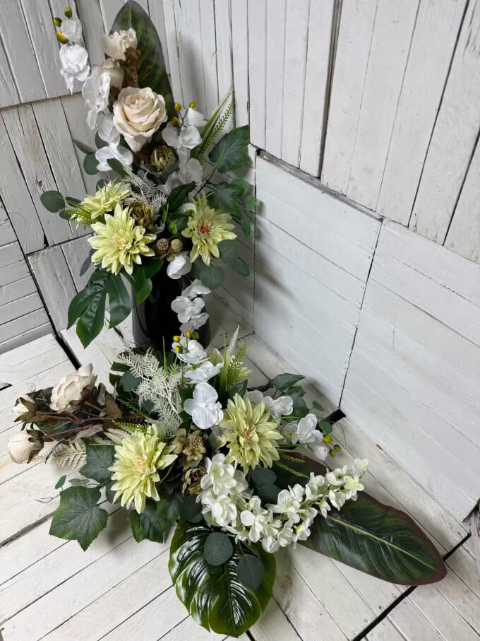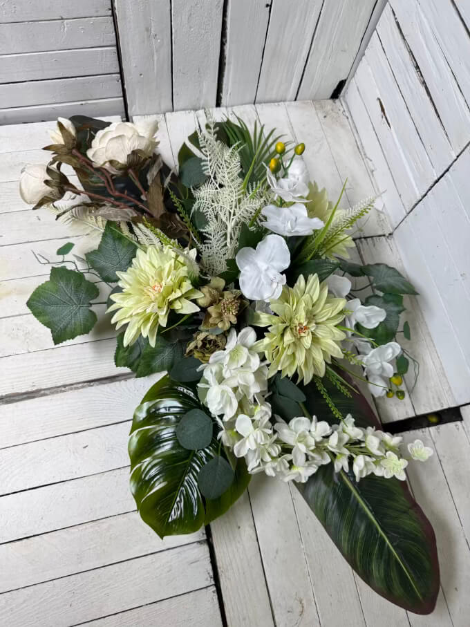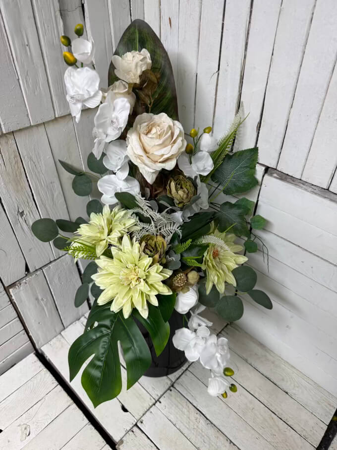 - Wysoka jakość wykonania – starannie wyselekcjonowane sztuczne kwiaty i naturalny bukiet, które zachowają świeżość na długo