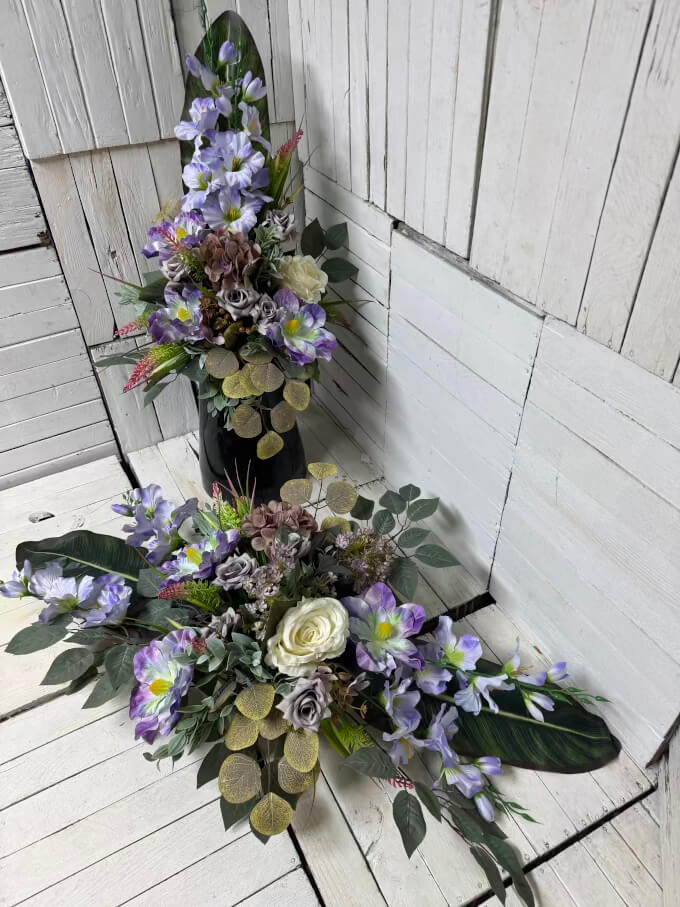 - Kompozycja z bukietem – zapewnia pełen wyraz pamięci i szacunku