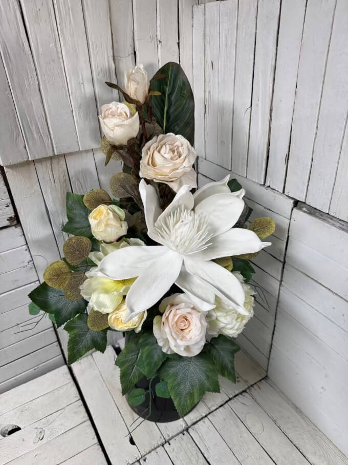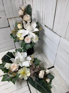 eleganckie kompozycje na cmentarz, kwiaty na grób, nowoczesne kwiaty na cmentarz,