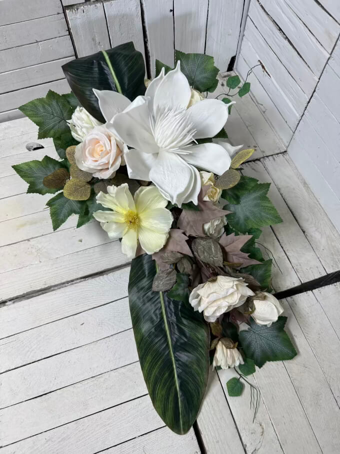 Nowoczesne stroiki na cmentarz ze sztucznych kwiatów, nietypowe stroiki na cmentarz, tanie stroiki na cmentarz